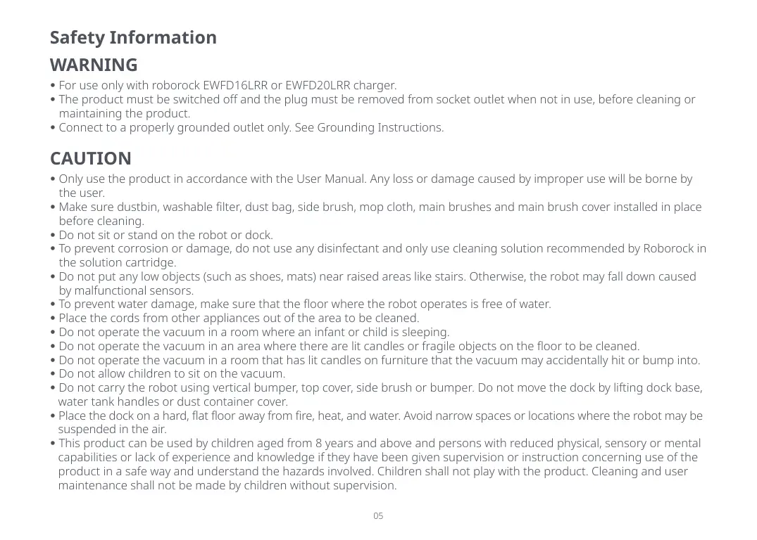 + Ne vous tenez pas assis ou debout sur le robot ou sa station