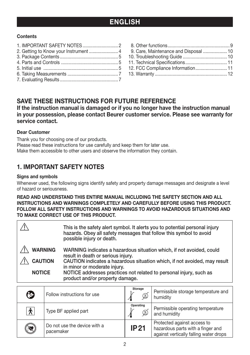 + Les réparations doivent uniquement être effectuées par le service clientèle de Beurer.