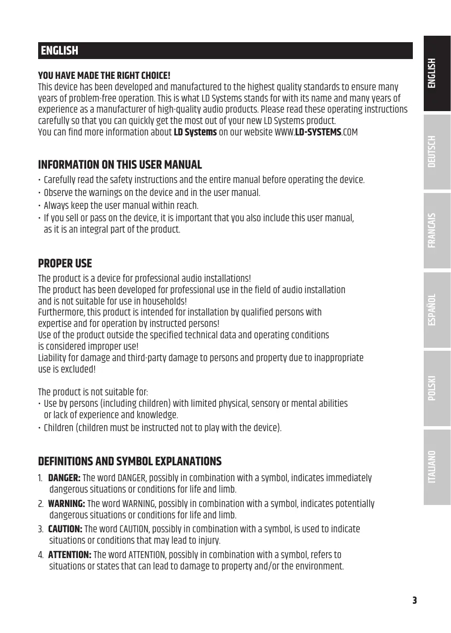 Download the instructions for your Amplificateur in PDF format for free! Find your manual LDIMA240 - LD Systems and take your electronic device back in hand. On this page are published all the documents necessary for the use of your device. LDIMA240 by LD Systems.