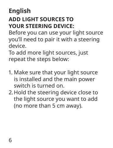 2.Maintenir le dispositif de commande à proximité (pas plus de 5 cm) de la source lumineuse à ajouter.