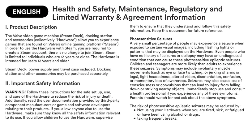 Download the instructions for your Game console in PDF format for free! Find your manual Steam Deck - Valve and take your electronic device back in hand. On this page are published all the documents necessary for the use of your device. Steam Deck by Valve.