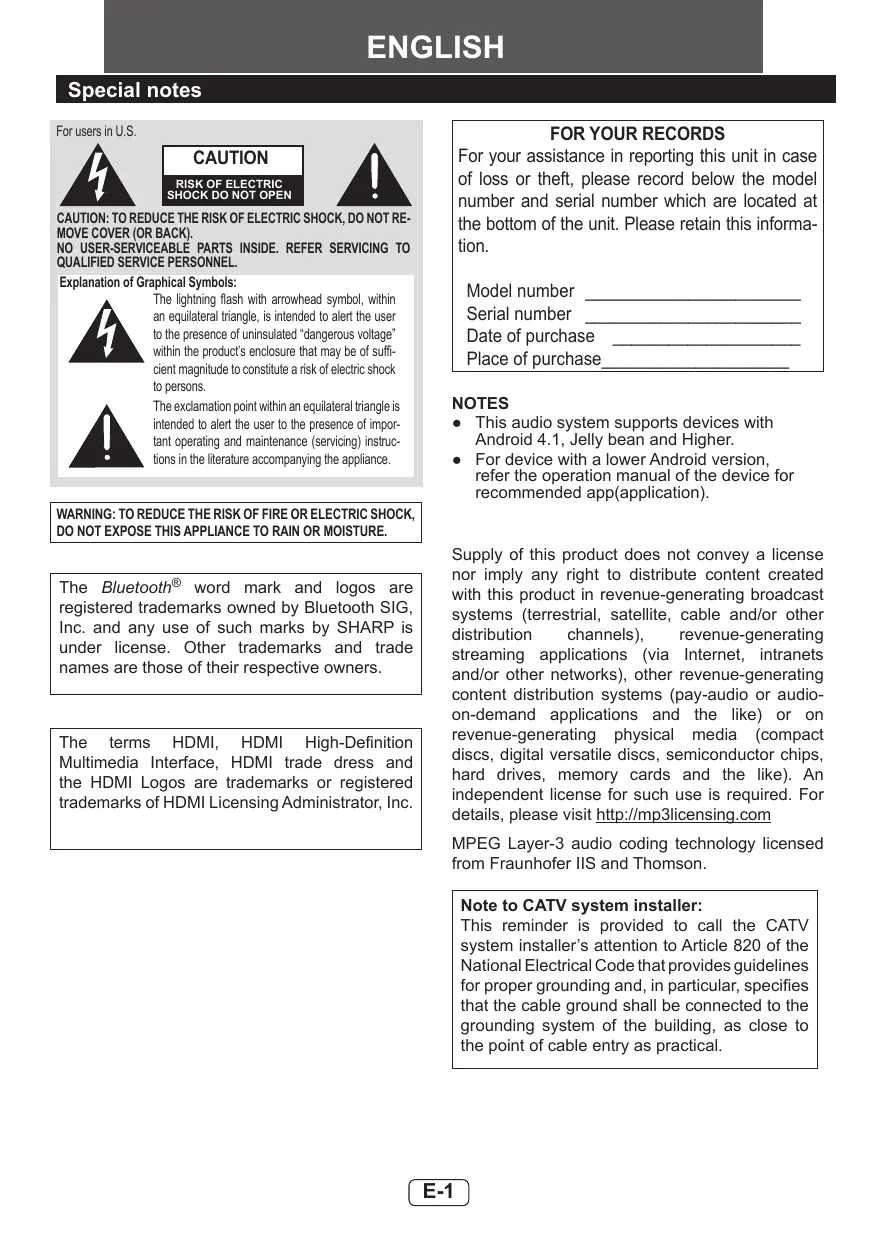 Le nom etles logos Bluetooth® sont des marques déposées appartenant à Bluetooth SIG, Inc. et toute utilisation de ces marques par SHARP est sous licence. Les autres marques et noms commerciaux sont ceux de leurs propriétaires respectifs.