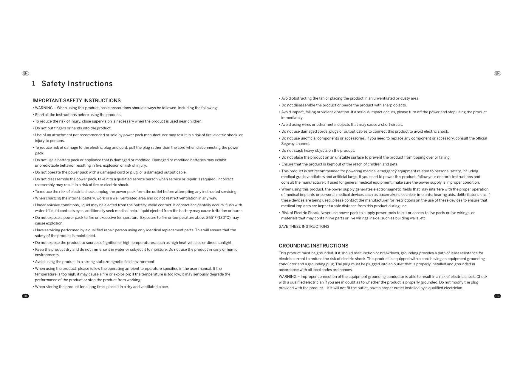 1. Before usingtthe Segway Portable Power Station ("Product") please carefully read the user manual to ensure proper usage after full comprehension. After reading, please keep the user manual safely for future reference. Failure to operate this product correctiy may result in severe personal injuries to yourself or others, as well as product damage and property loss.