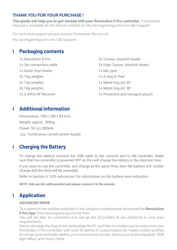 This guide will help you to get started with your Revolution 5 Pro controller. À complete manual is available on the Nacon website at: Mynacongaming com/en-GB/support