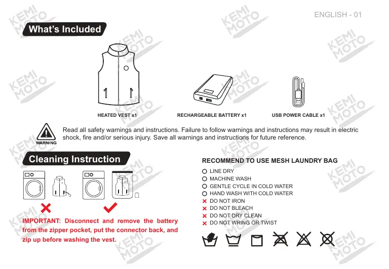 F1117-07201 - Veste chauffante KEMIMOTO - Free user manual and instructions