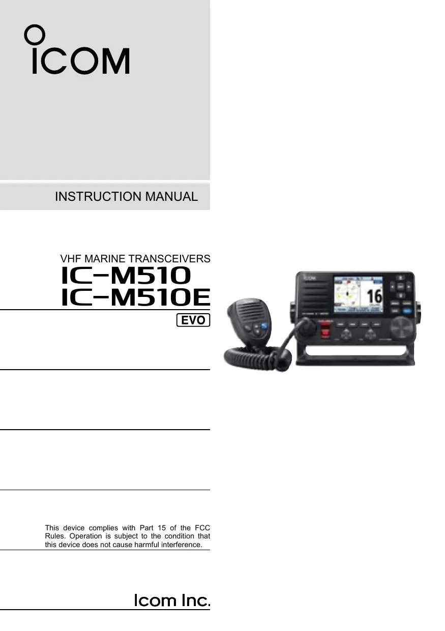 Download the instructions for your Transcepteur VHF marin in PDF format for free! Find your manual IC-M510E - ICOM and take your electronic device back in hand. On this page are published all the documents necessary for the use of your device. IC-M510E by ICOM.