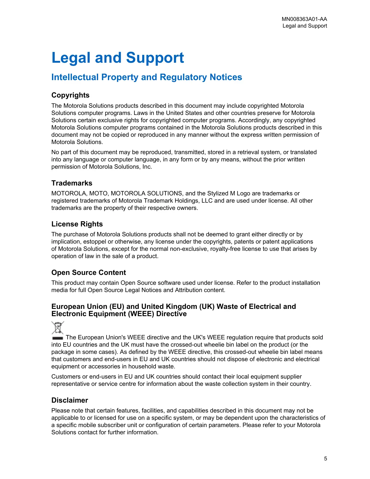 Motorola Solutions ou sur l'étiquette de conformité de la FCC en vigueur pour le Produit lorsque le Produit a été initialement distribué par Motorola Solutions.