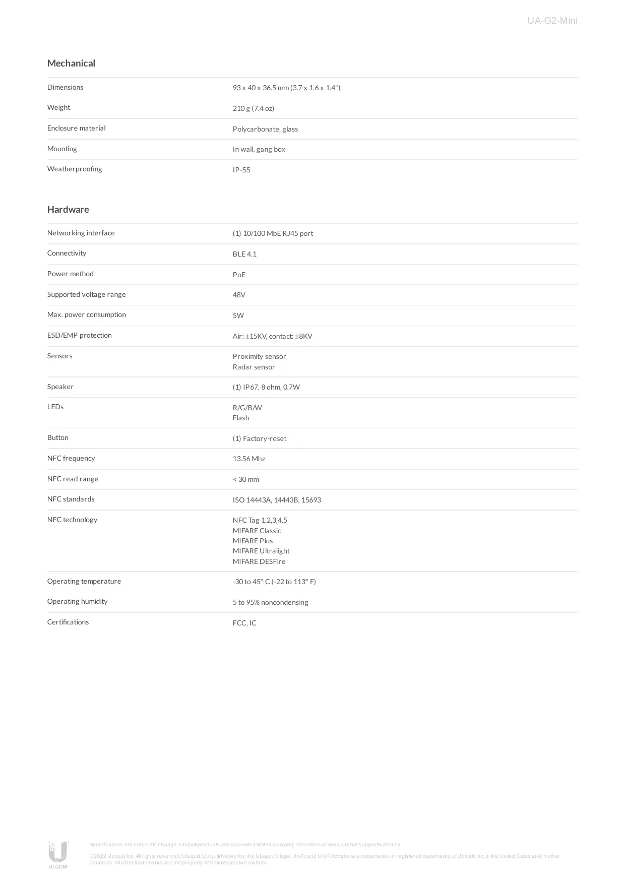 UA-G2-Mini - Lecteur d'accès Ubiquiti - Free user manual and instructions