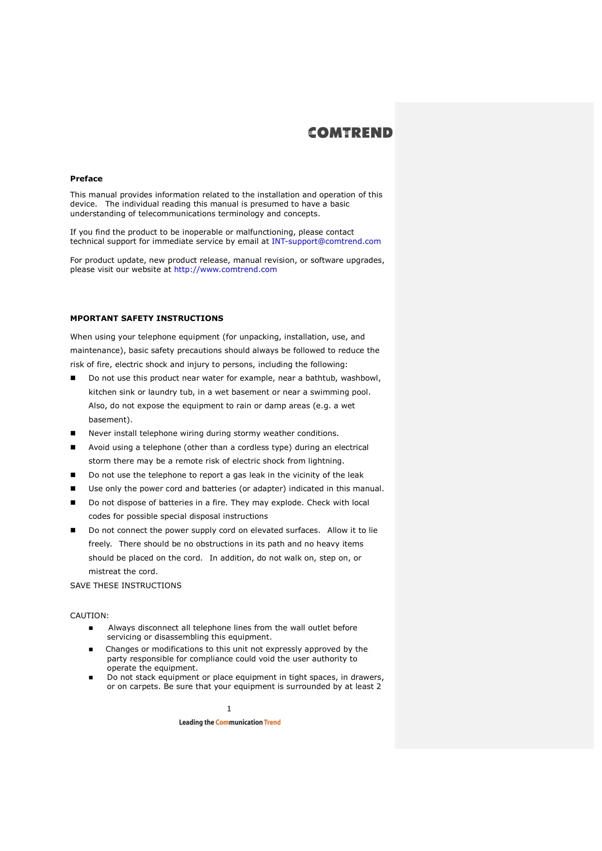Brand : Comtrend