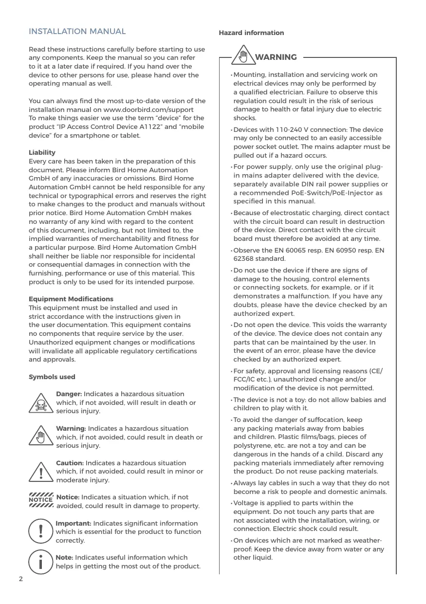 Download the instructions for your Système de contrôle d'accès in PDF format for free! Find your manual A1122 - Bird Home Automation and take your electronic device back in hand. On this page are published all the documents necessary for the use of your device. A1122 by Bird Home Automation.