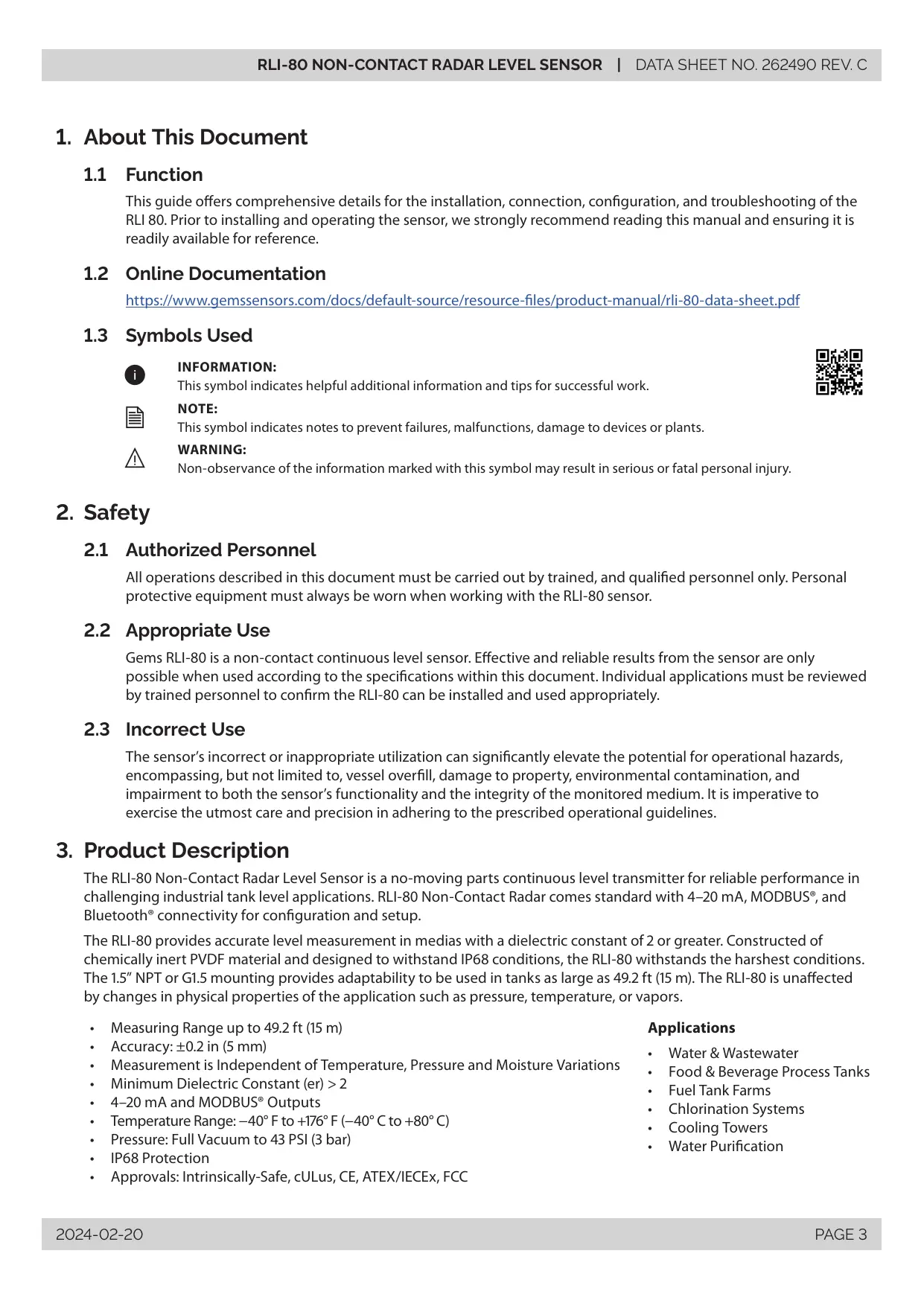Download the instructions for your Capteur de niveau in PDF format for free! Find your manual RLI-80 - Gems and take your electronic device back in hand. On this page are published all the documents necessary for the use of your device. RLI-80 by Gems.