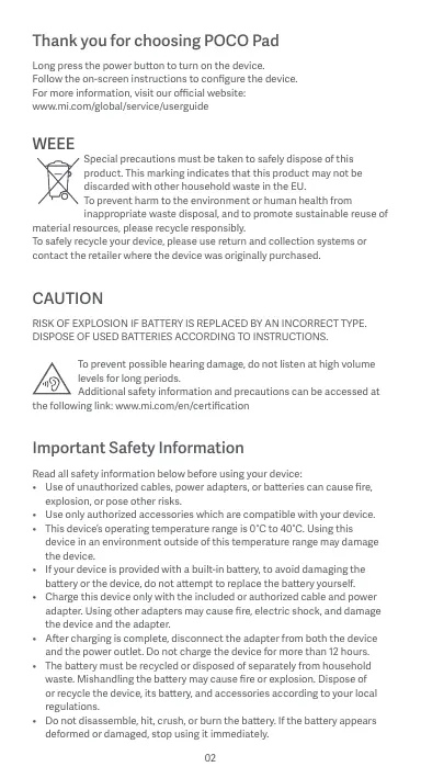 Download the instructions for your Tablet in PDF format for free! Find your manual Pad - POCO and take your electronic device back in hand. On this page are published all the documents necessary for the use of your device. Pad by POCO.