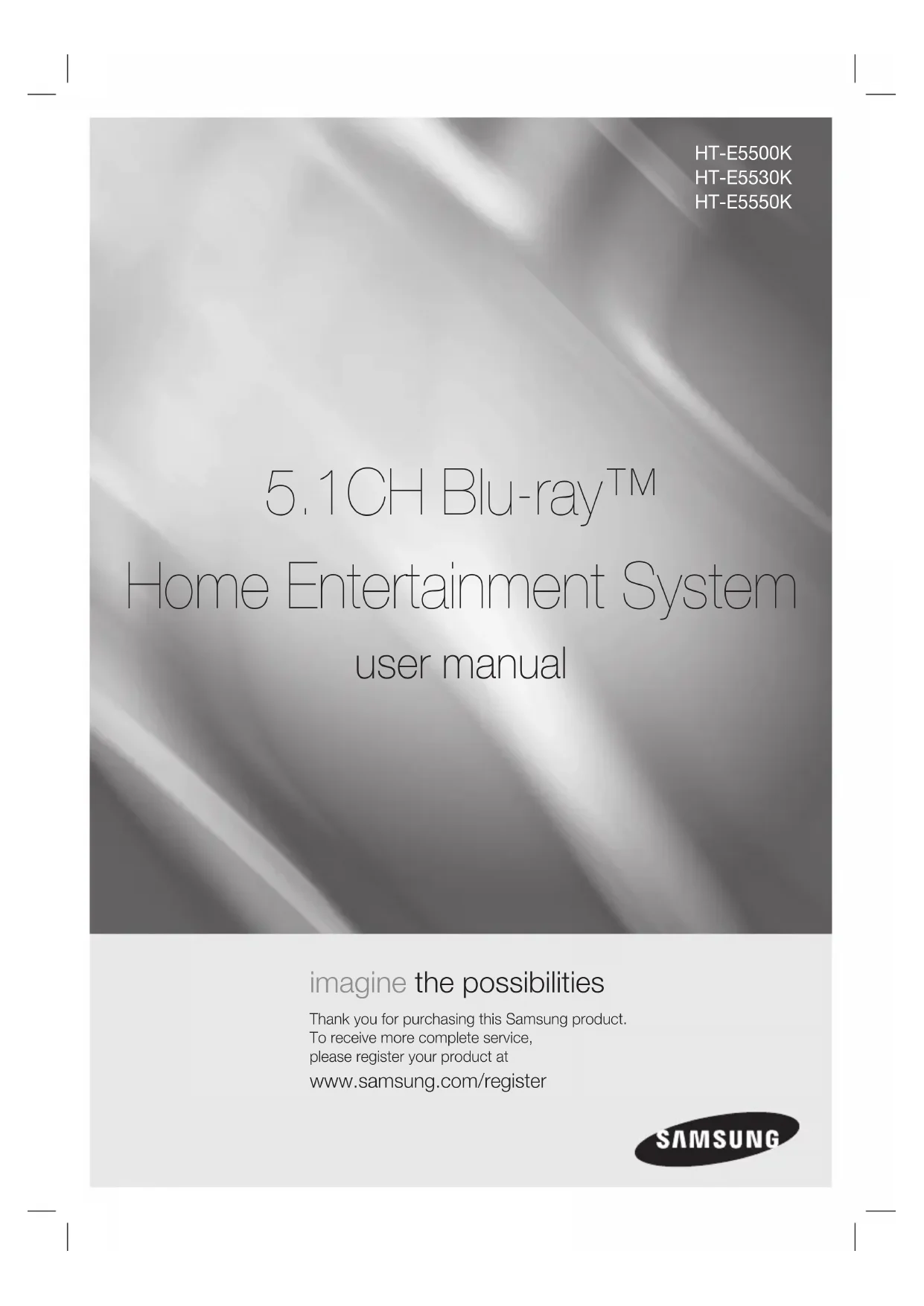 Download the instructions for your Système home cinéma in PDF format for free! Find your manual HTE5550K - SAMSUNG and take your electronic device back in hand. On this page are published all the documents necessary for the use of your device. HTE5550K by SAMSUNG.