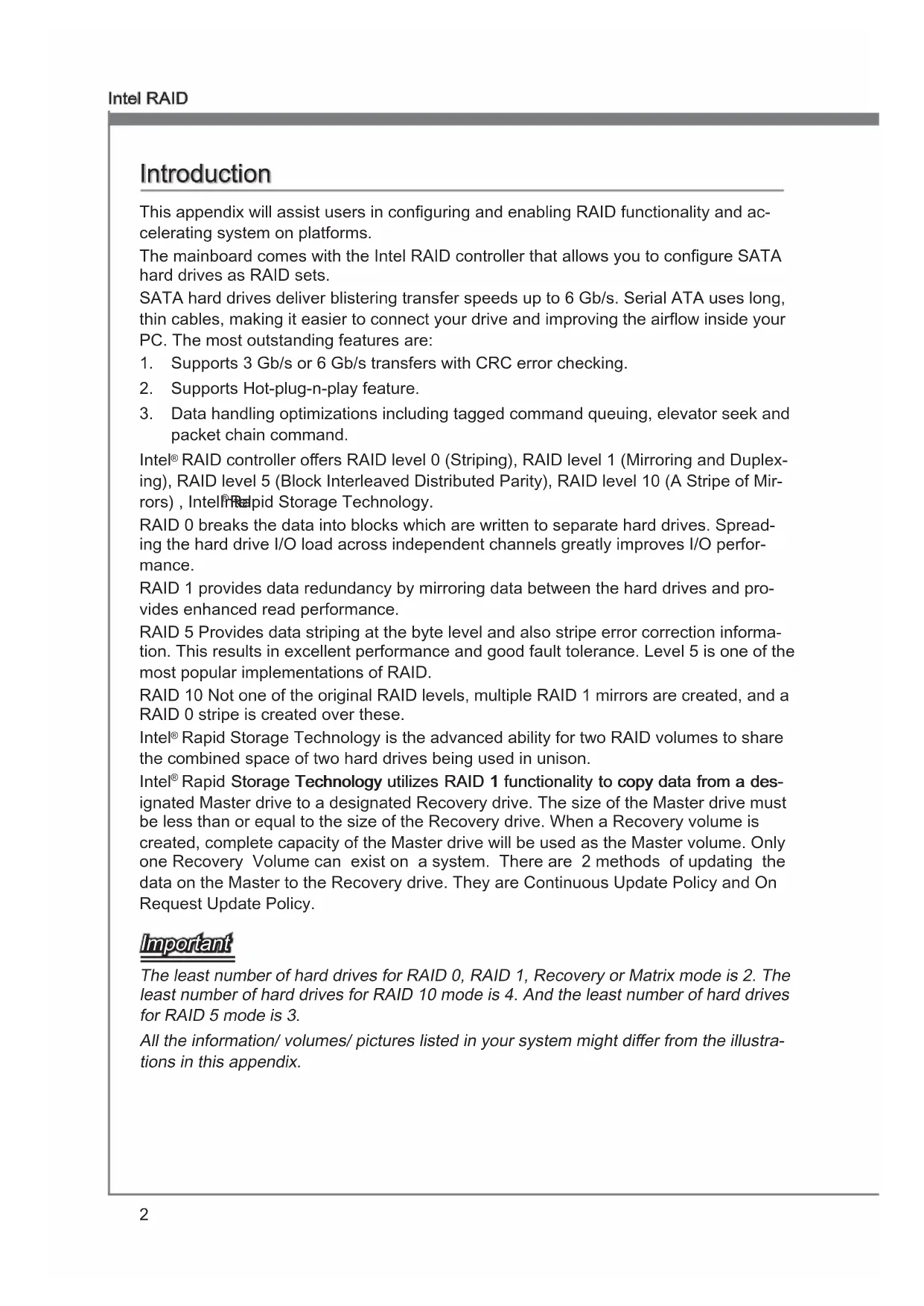 tem BIOS on all mainboards with a supported Intel chipset� The Intel Rapid StorageRapid Storage