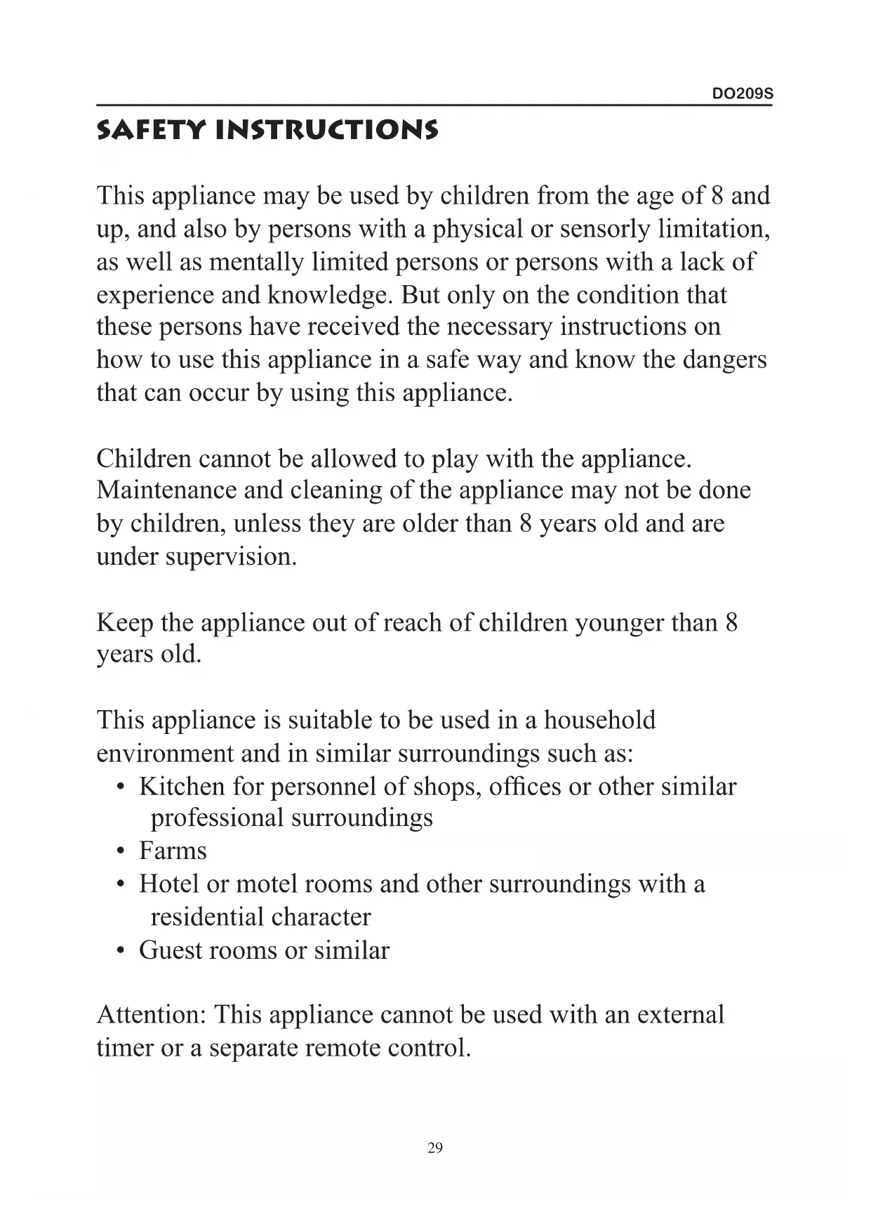 SAFETY INSTRUCTIONS This appliance may be used by children from the age of 8 and