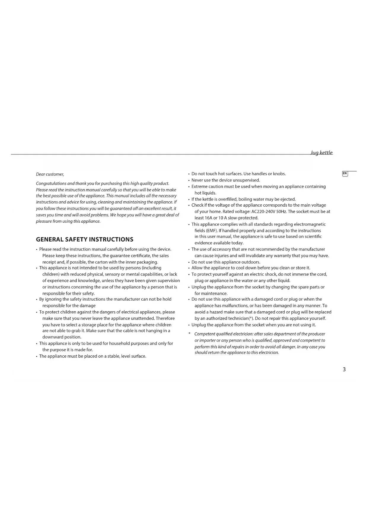 • If the appliance is accidentally switched on when empty, the boil-dry