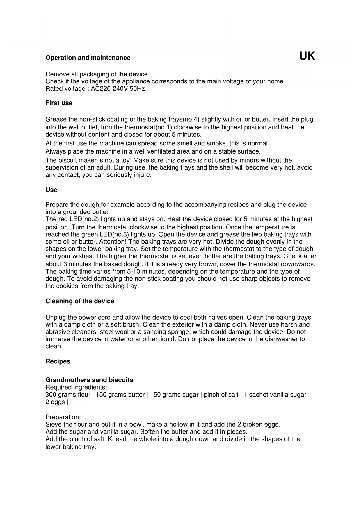 The biscuit maker is not a toy! Make sure this device is not used by minors without the