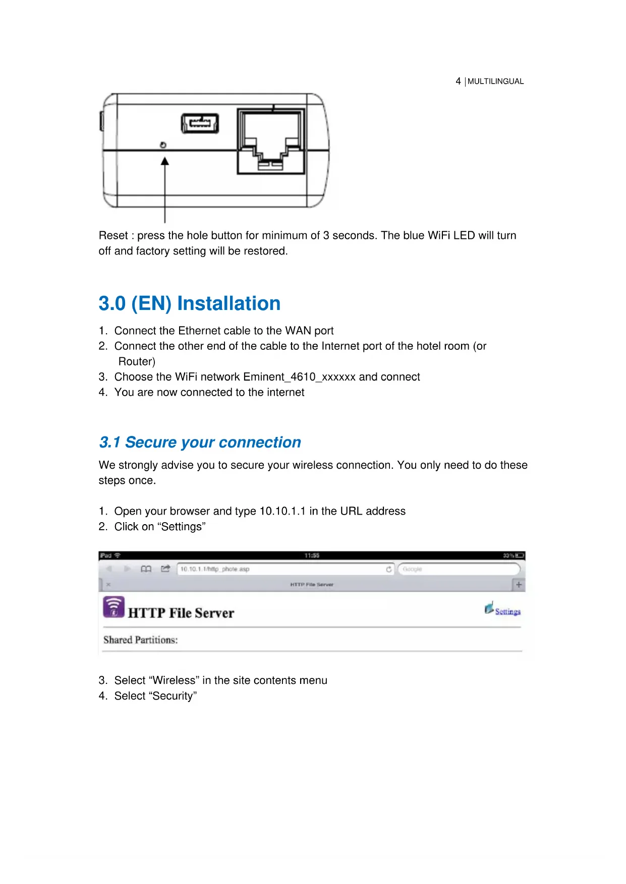 Please note that you can only access file formats that Apple devices support! Please check our website www.eminent-online.com for the newest updated manual, drivers and firmware. Also, you will find frequently asked questions in the FAQ section.7