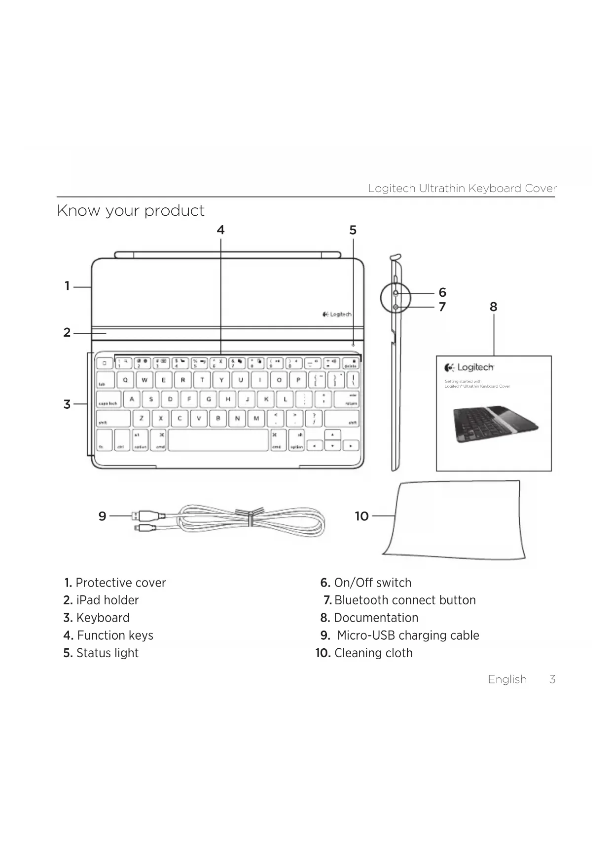 © 2012 Logitech. All rights reserved. Logitech, the Logitech logo, and other Logitech marks are owned by Logitech and may be registered. Apple and iPad are trademarks of Apple Inc., registered in the U.S. and other countries. Bluetooth is a registered trademark of Bluetooth SIG, Inc. All other trademarks are the property of their respective owners. Logitech assumes no responsibility for any errors that may appear in this manual. Information contained herein is subject to change without notice.