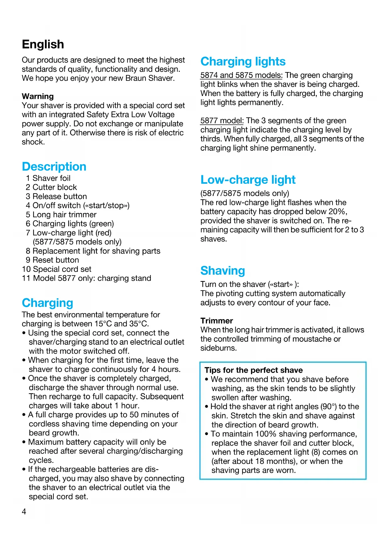 Download the instructions for your Shaver in PDF format for free! Find your manual 5877 Contour - BRAUN and take your electronic device back in hand. On this page are published all the documents necessary for the use of your device. 5877 Contour by BRAUN.