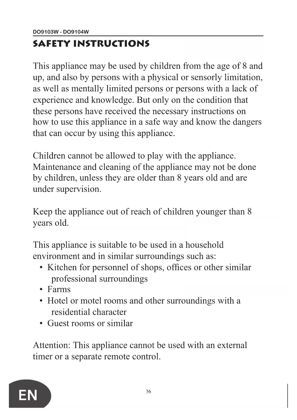 SAFETY INSTRUCTIONS This appliance may be used by children from the age of 8 and