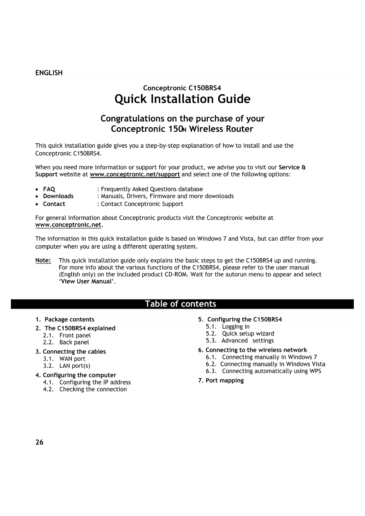150N WL - Routeur CONCEPTRONIC - Free user manual and instructions