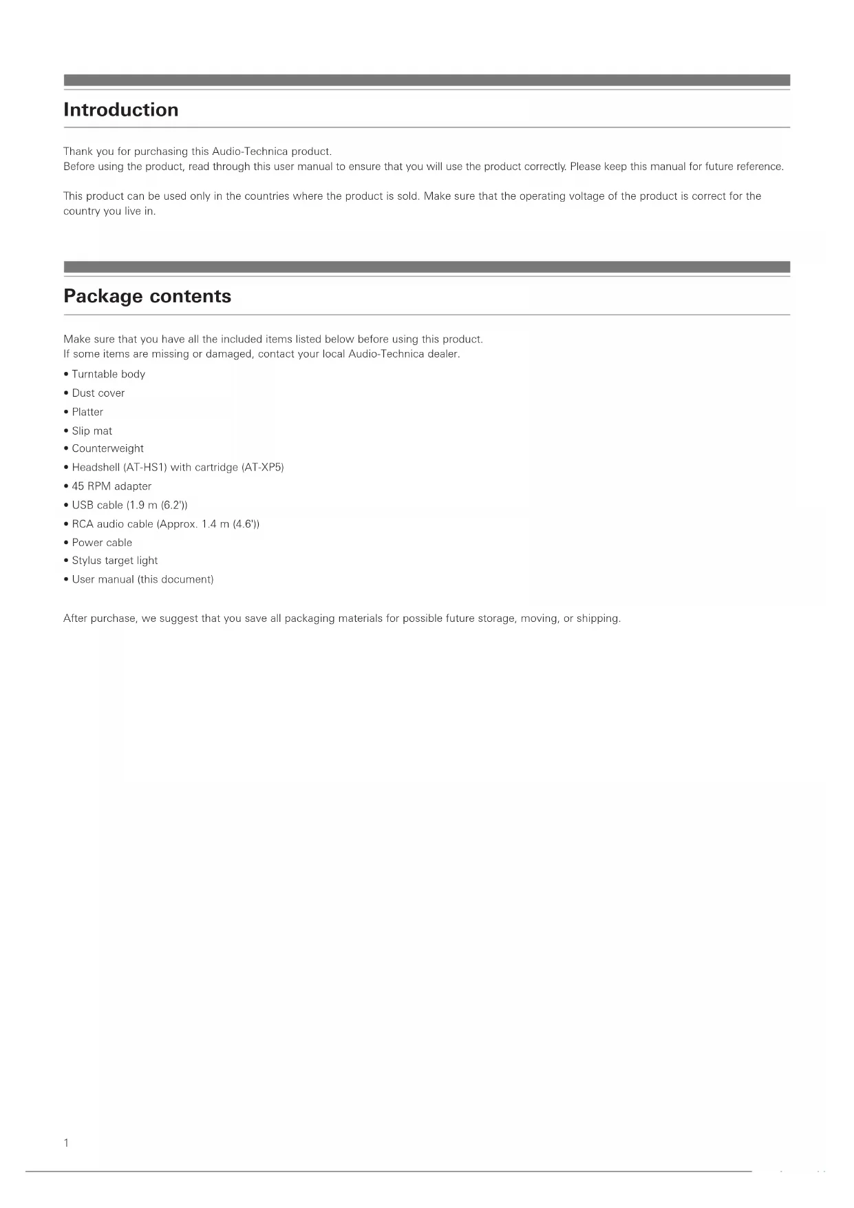 - User manual (this document) After purchase, we suggest that you save all packaging materials for possible future storage, moving, or shipping.2