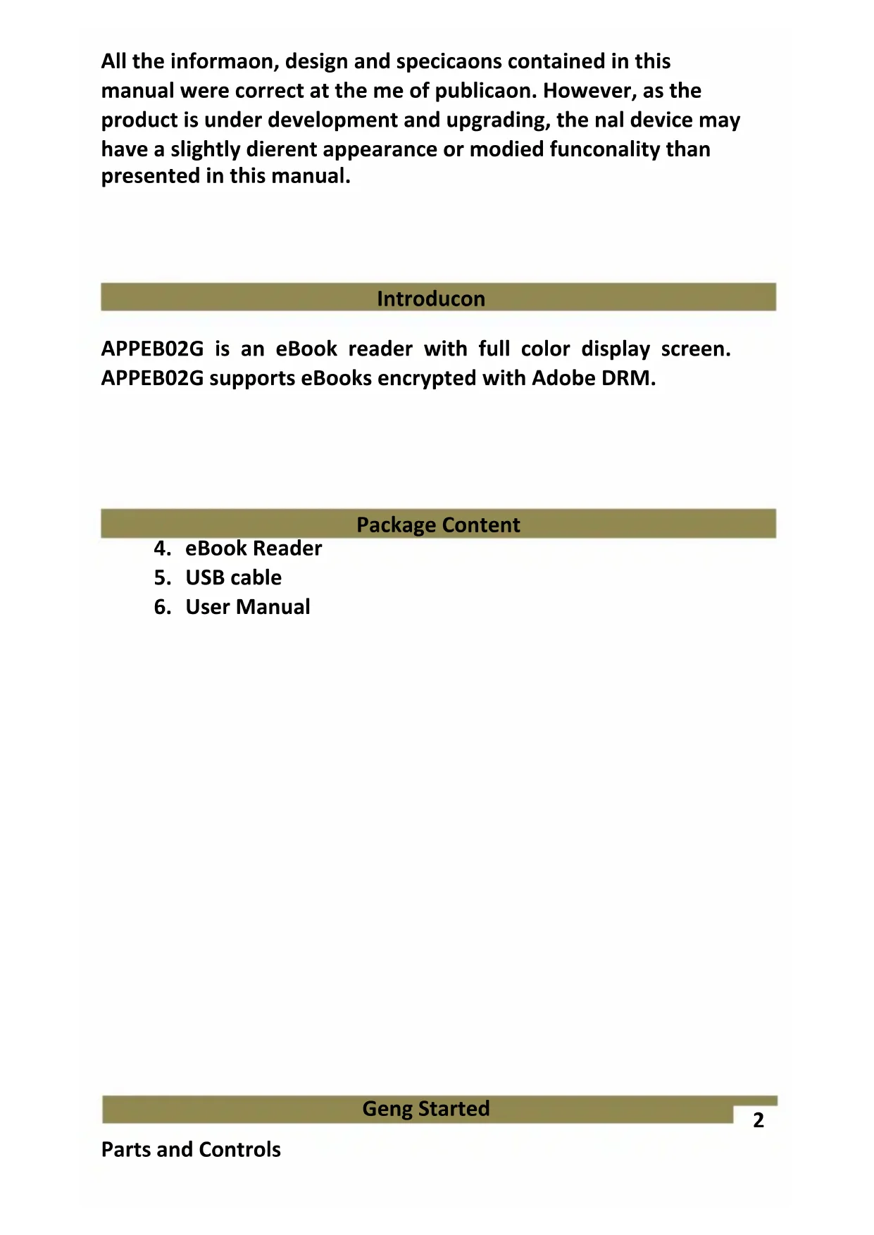 All the informmaon, design and specicaons contained in this manual were correct at the me of publicaon. However, as the product is under development and upgrading, the nal device may have a slightly dierent appearance or modied functionality than presented in this manual.