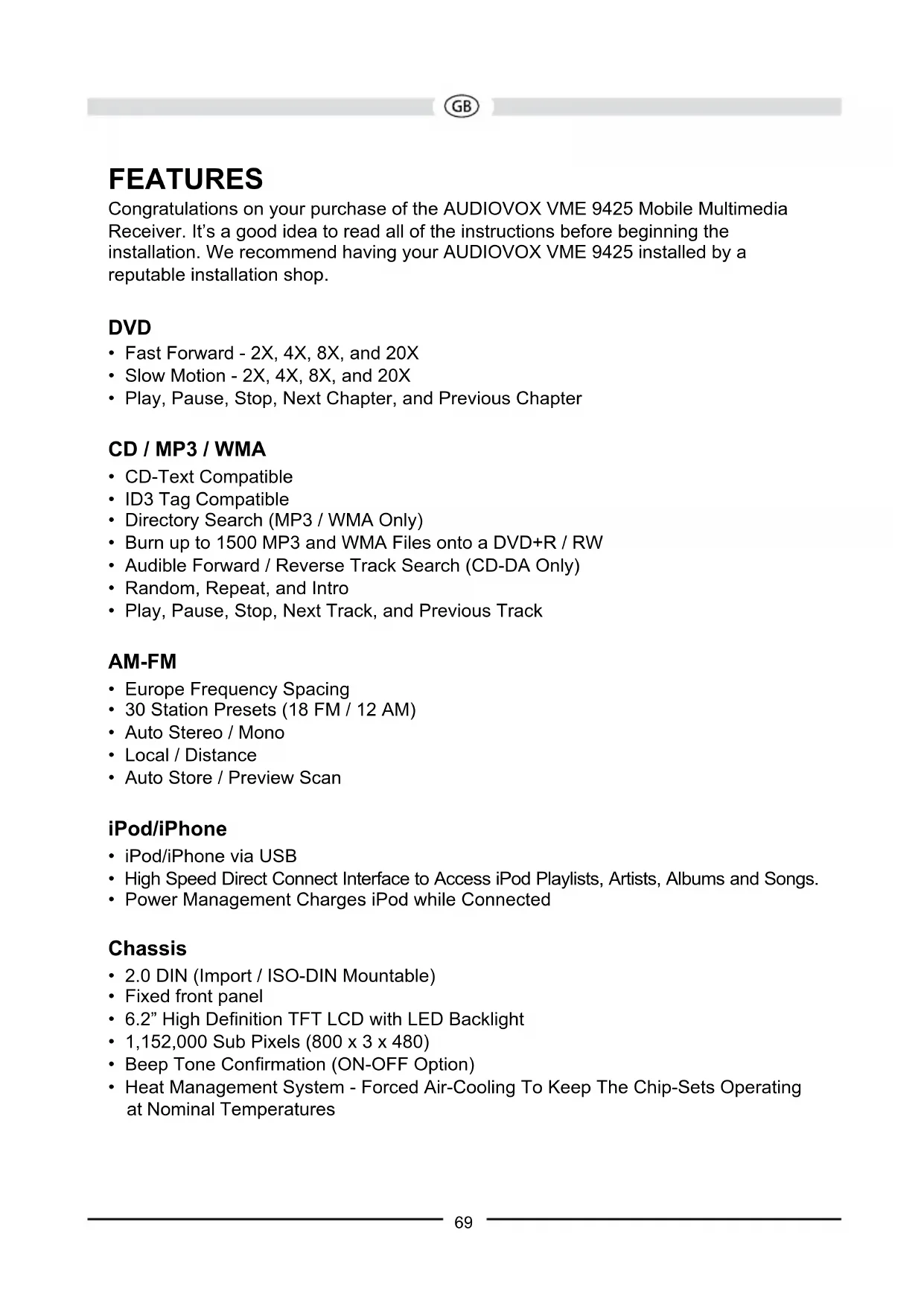 USER MANUAL VME 9425 AUDIOVOX
