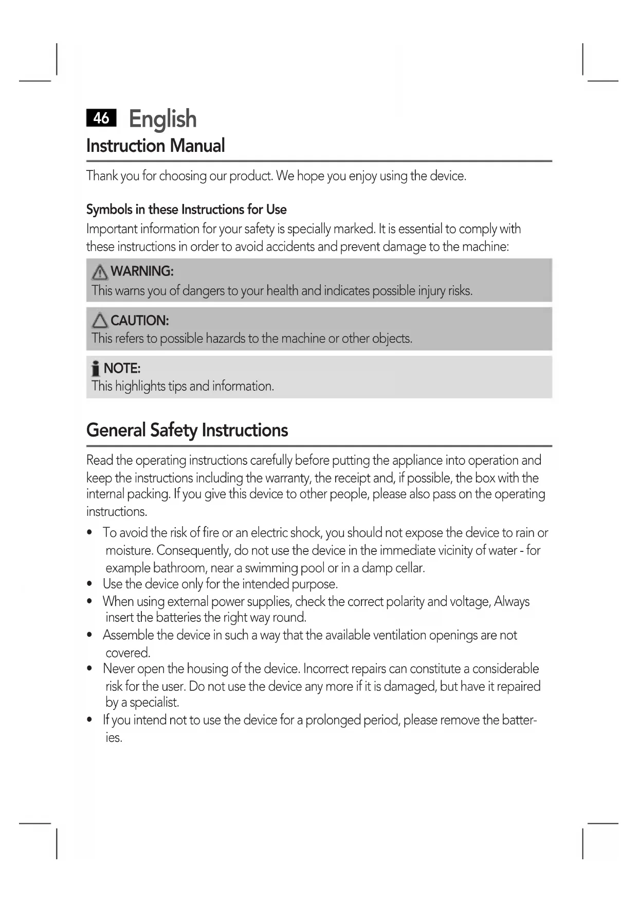 risk for the user. Do not use the device any more if it is damaged, but have it repaired