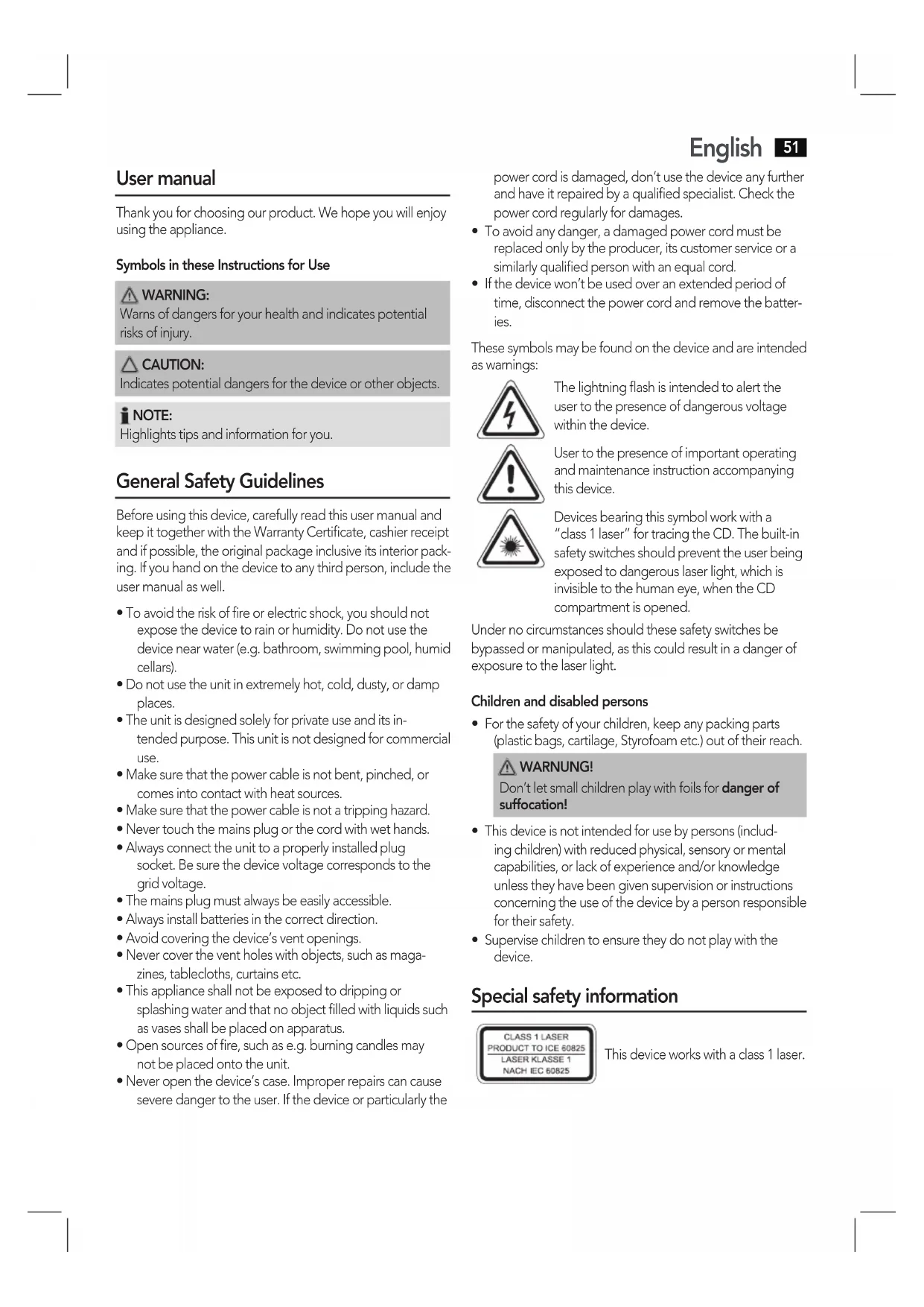 This device works with a class 1 laser.English