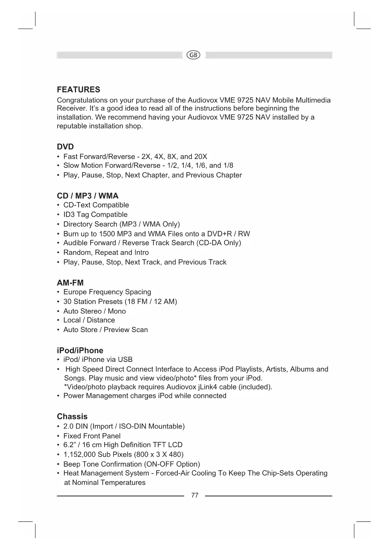 Download the instructions for your Car stereo in PDF format for free! Find your manual VME 9725 NAV - AUDIOVOX and take your electronic device back in hand. On this page are published all the documents necessary for the use of your device. VME 9725 NAV by AUDIOVOX.