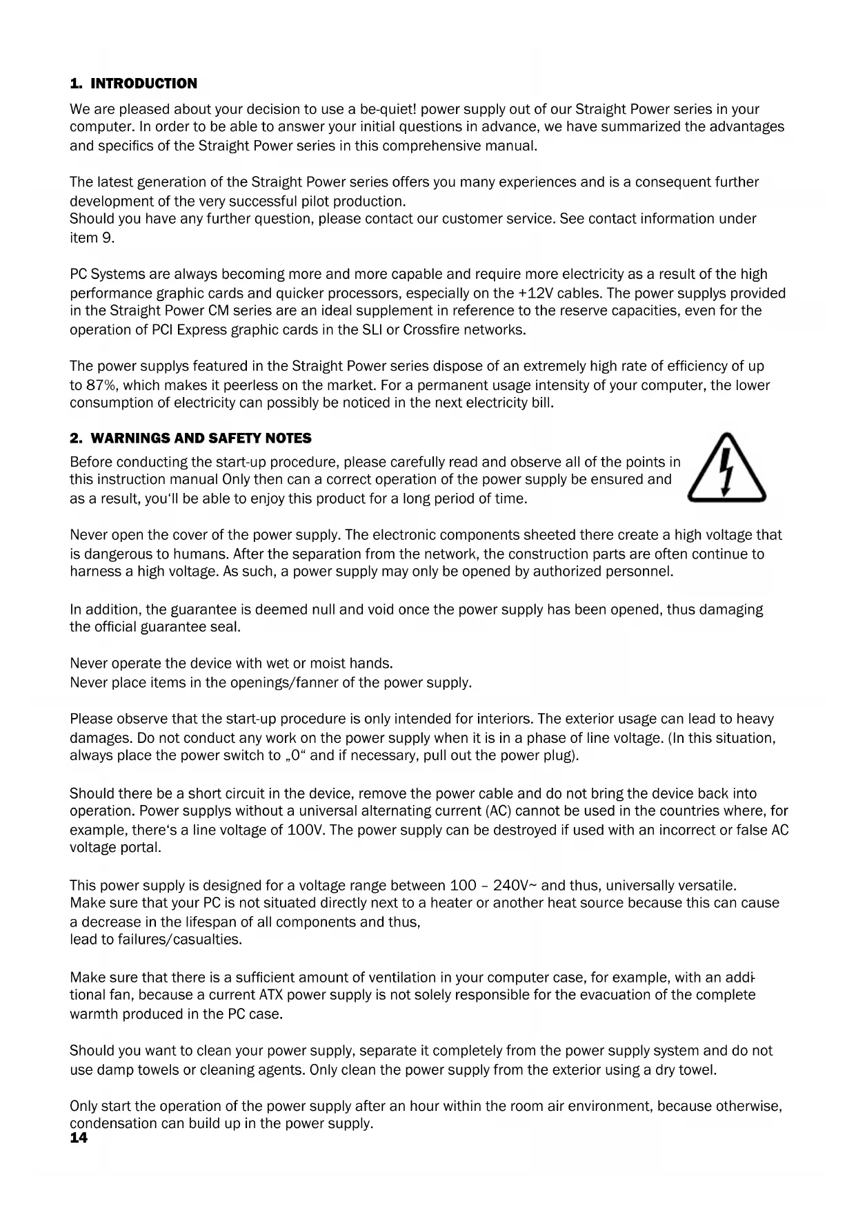 We are pleased about your decision to use a be-quiet! power supply out of our Straight Power series in your computer. In order to be able to answer your initial questions in advance, we have summarized the advantages and specifics of the Straight Power series in this comprehensive manual.