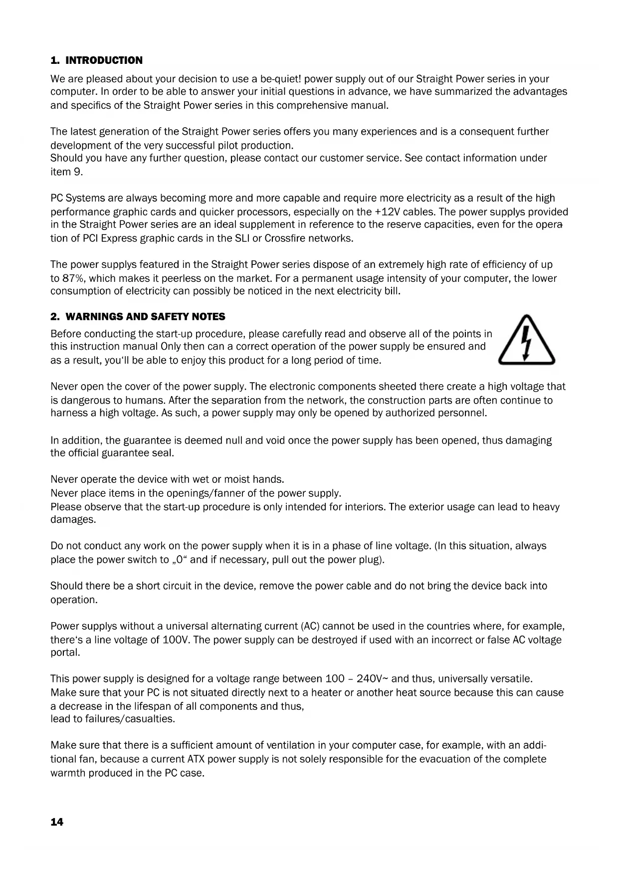 We are pleased about your decision to use a be-quiet! power supply out of our Straight Power series in your computer. In order to be able to answer your initial questions in advance, we have summarized the advantages and specifics of the Straight Power series in this comprehensive manual.