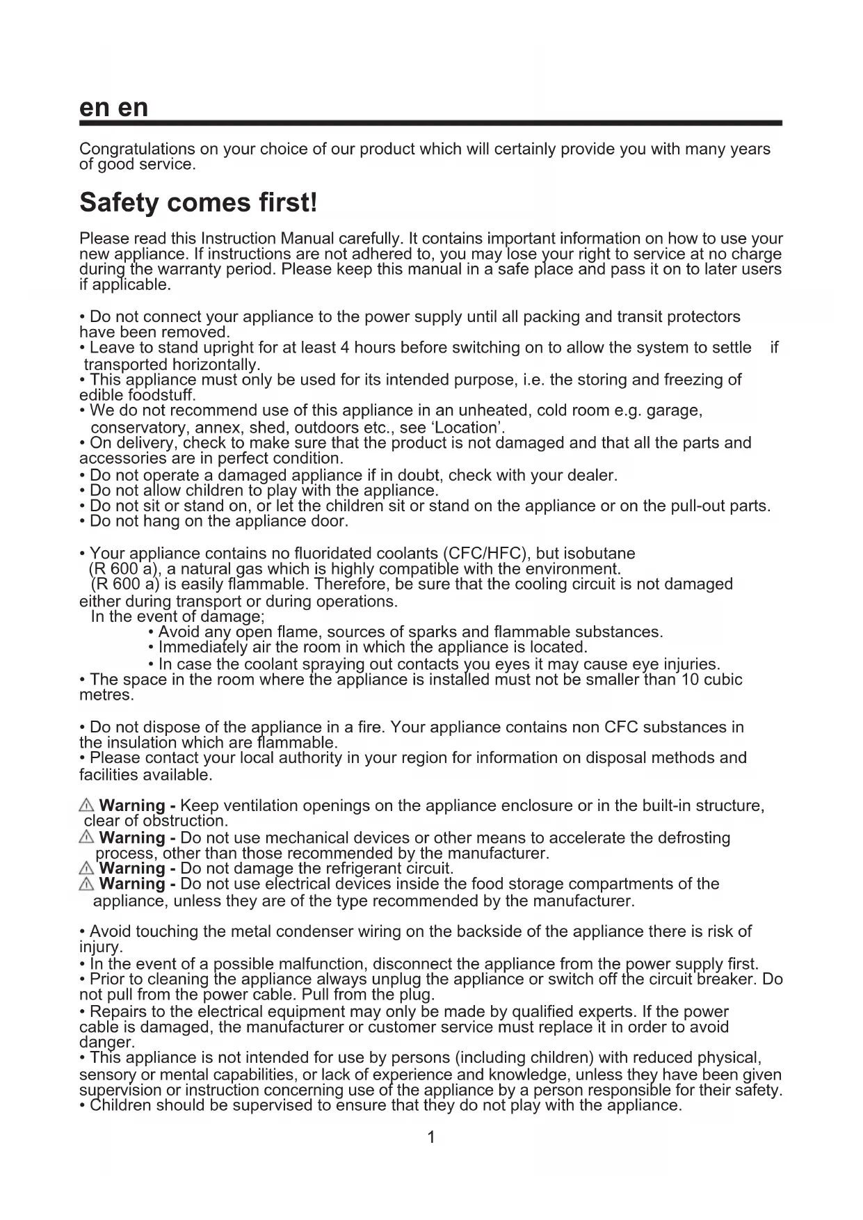 • Your appliance contains no fluoridated coolants (CFC/HFC), but isobutane