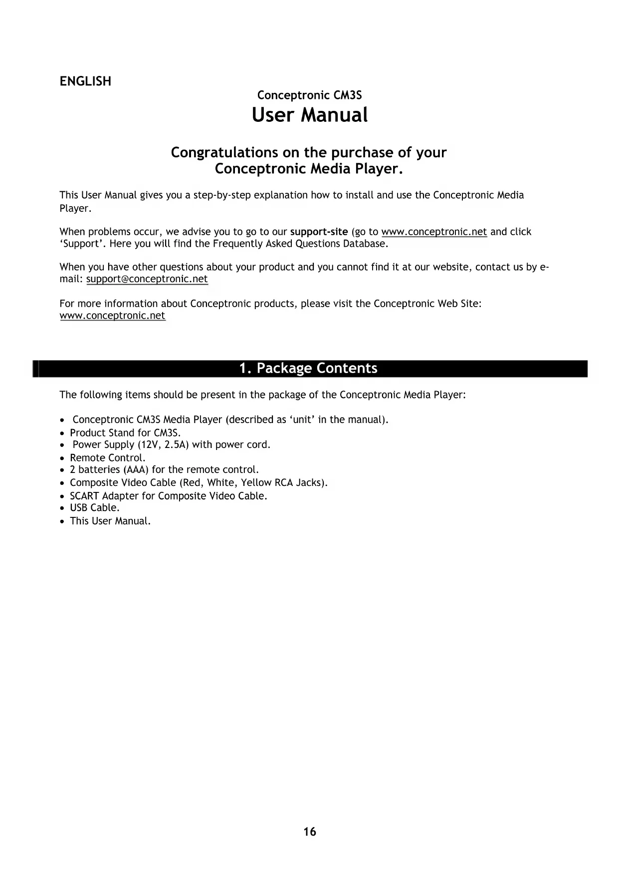 - Conceptronic CM3S Media Player (described as ‘unit’ in the manual).