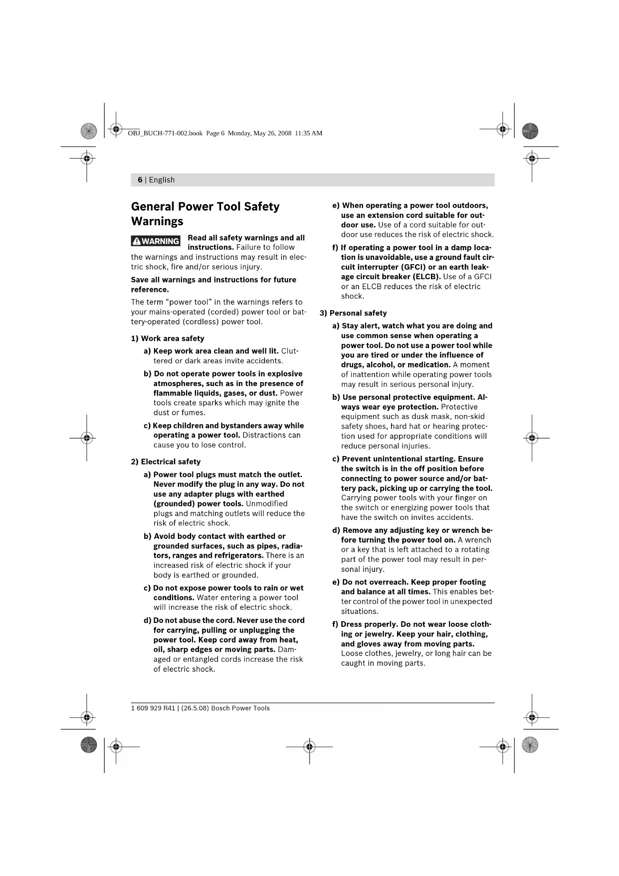 Bosch Power Tools 1 609 929 R41 | (26.5.08)