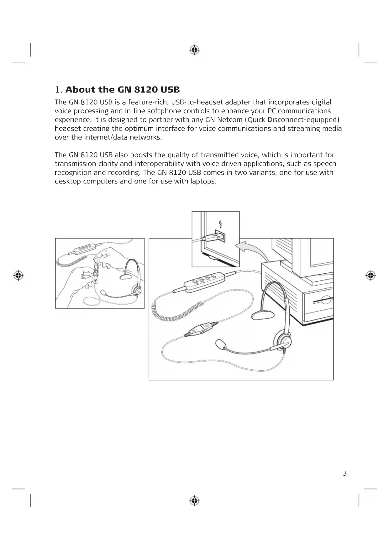 9.0.4 or greater), the GN 8120 USB is a true plug-and-play adapter. Just plug your GN Netcom brand headset into the adapter, and plug the adapter into the USB port of your