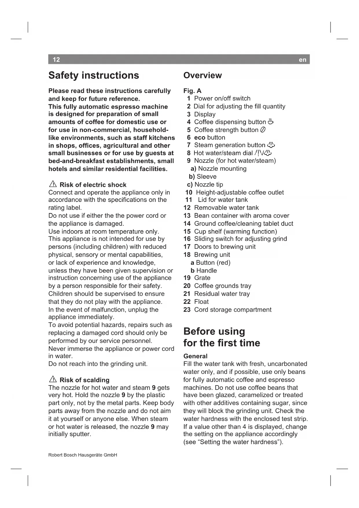 Benvenuto Venezia TCA5601 - Machine à café BOSCH - Free user manual and instructions