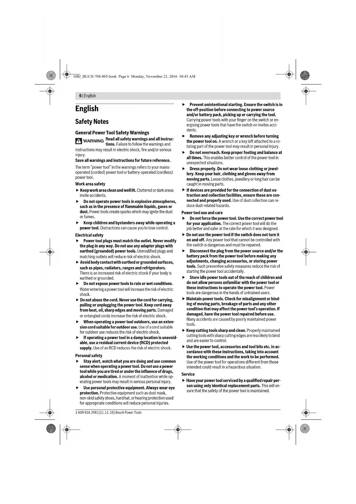 OBJ_BUCH-708-005.book Page 3 Monday, November 21, 2016 10:43 AM1 609 92A 2V8 | (29.11.16) Bosch Power Tools