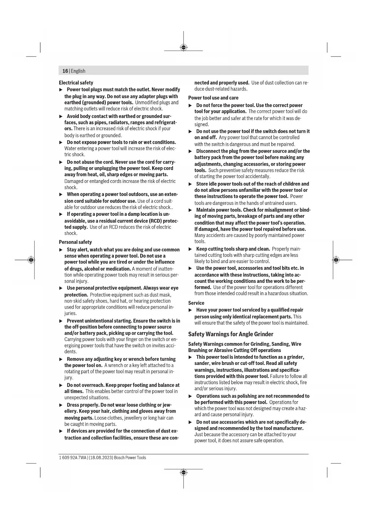 or fumes. u Keep children and bystanders away while operating a power tool. Distractions can cause you to lose control. Bosch Power Tools 1 609 92A 7WA | (18.08.2023)16 | English