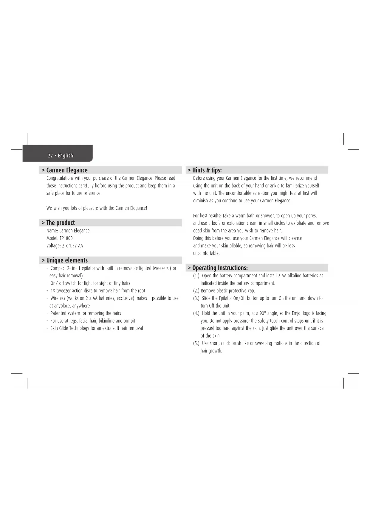 EP1800 - Epilator Carmen - Free user manual and instructions