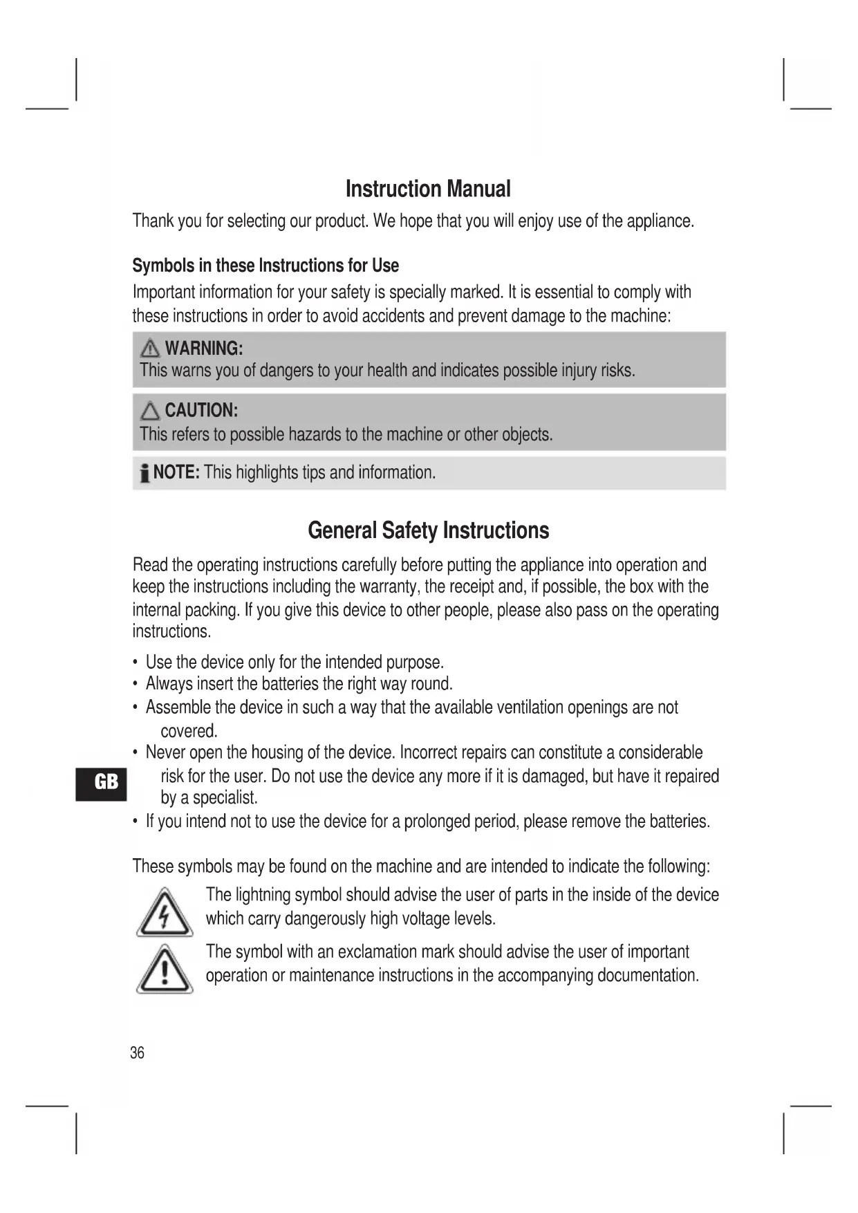 risk for the user. Do not use the device any more if it is damaged, but have it repaired