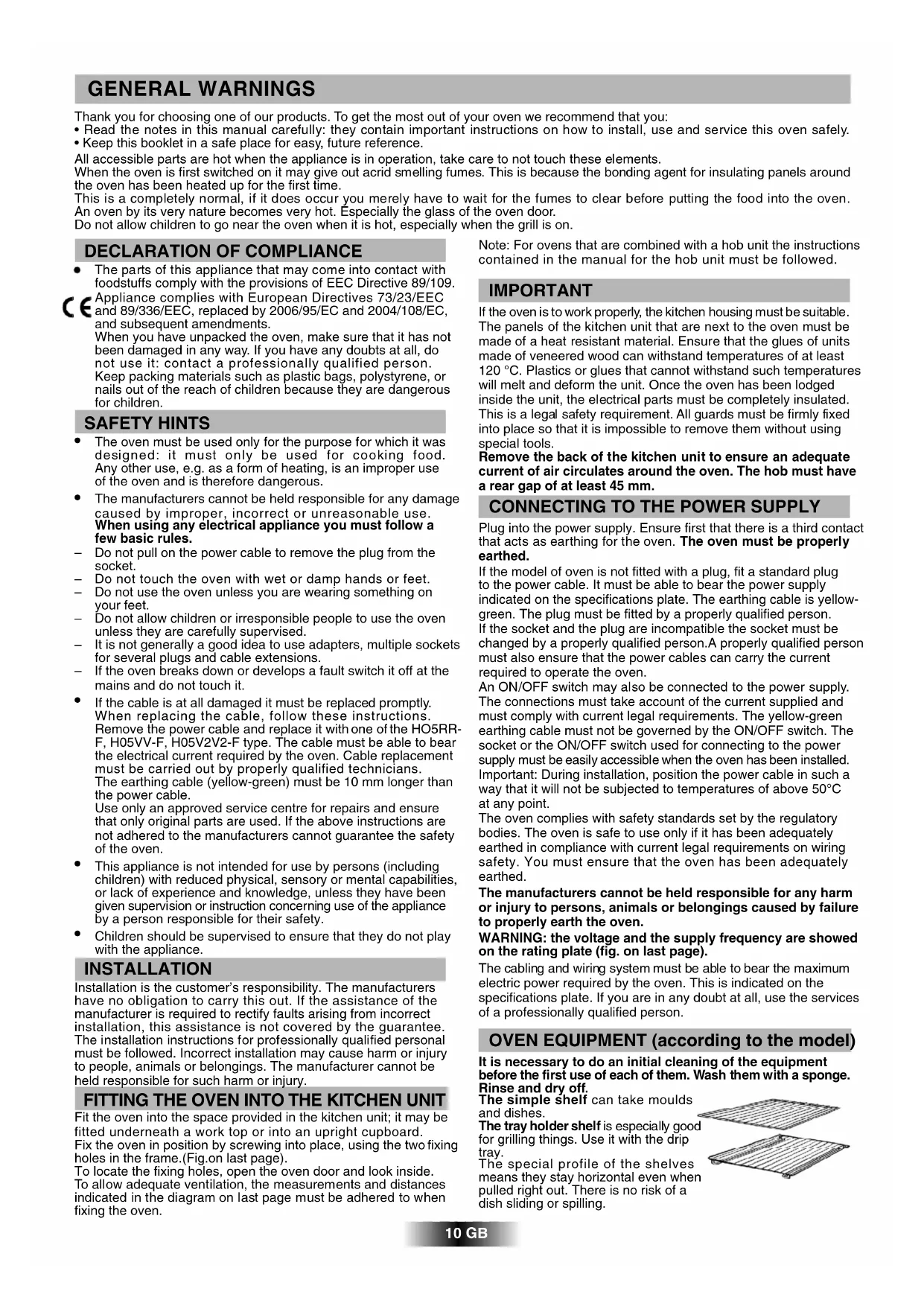 10 GB Note: For ovens that are combined with a hob unit the instructions