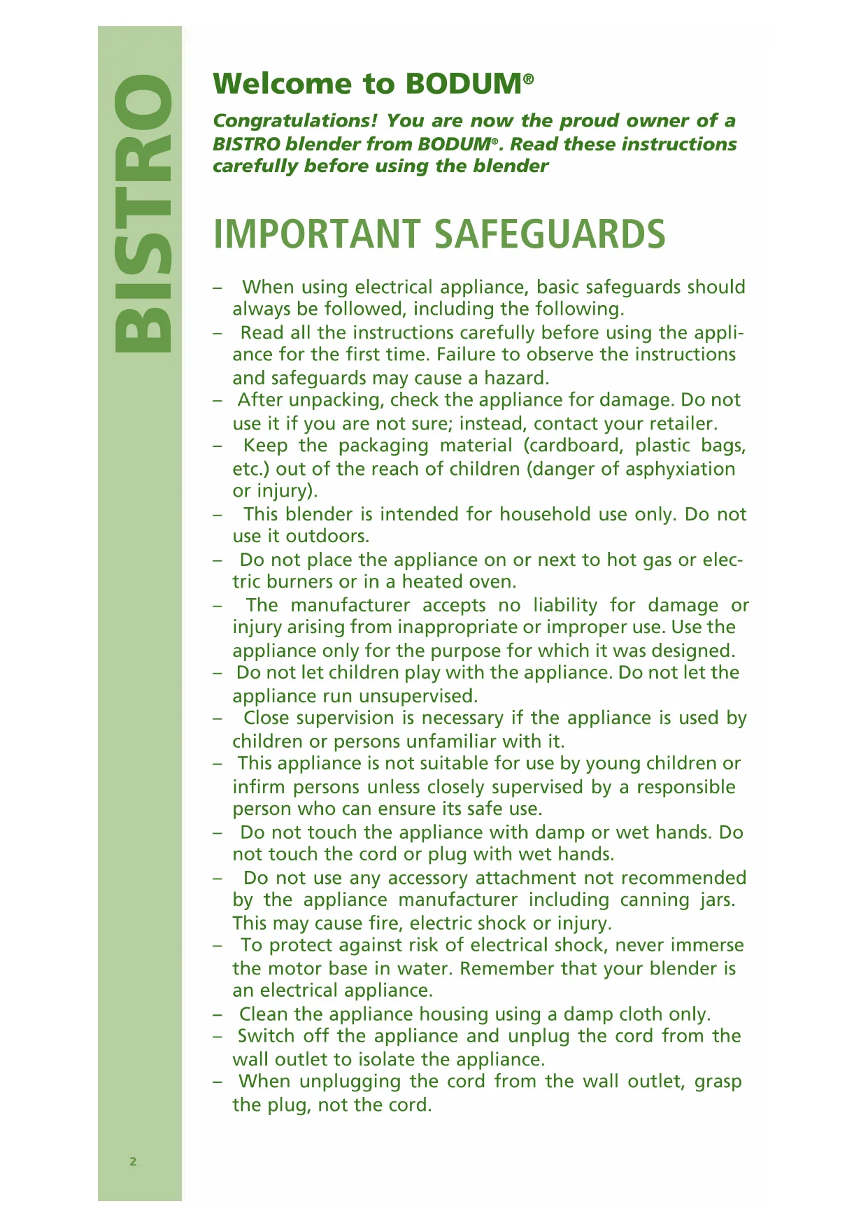 Congratulations! You are now the proud owner of a BISTRO blender from BODUM