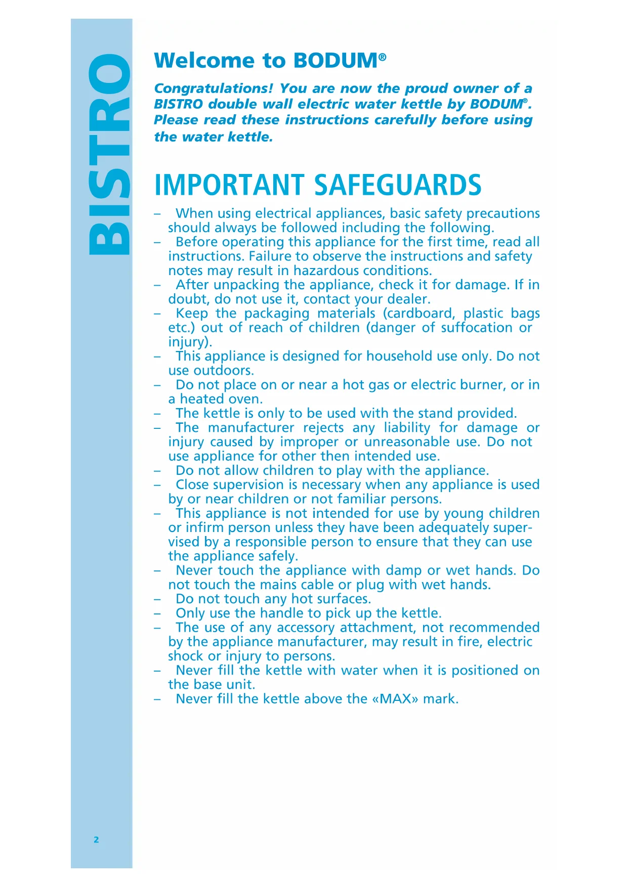 Congratulations! You are now the proud owner of a BISTRO double wall electric water kettle by BODUM