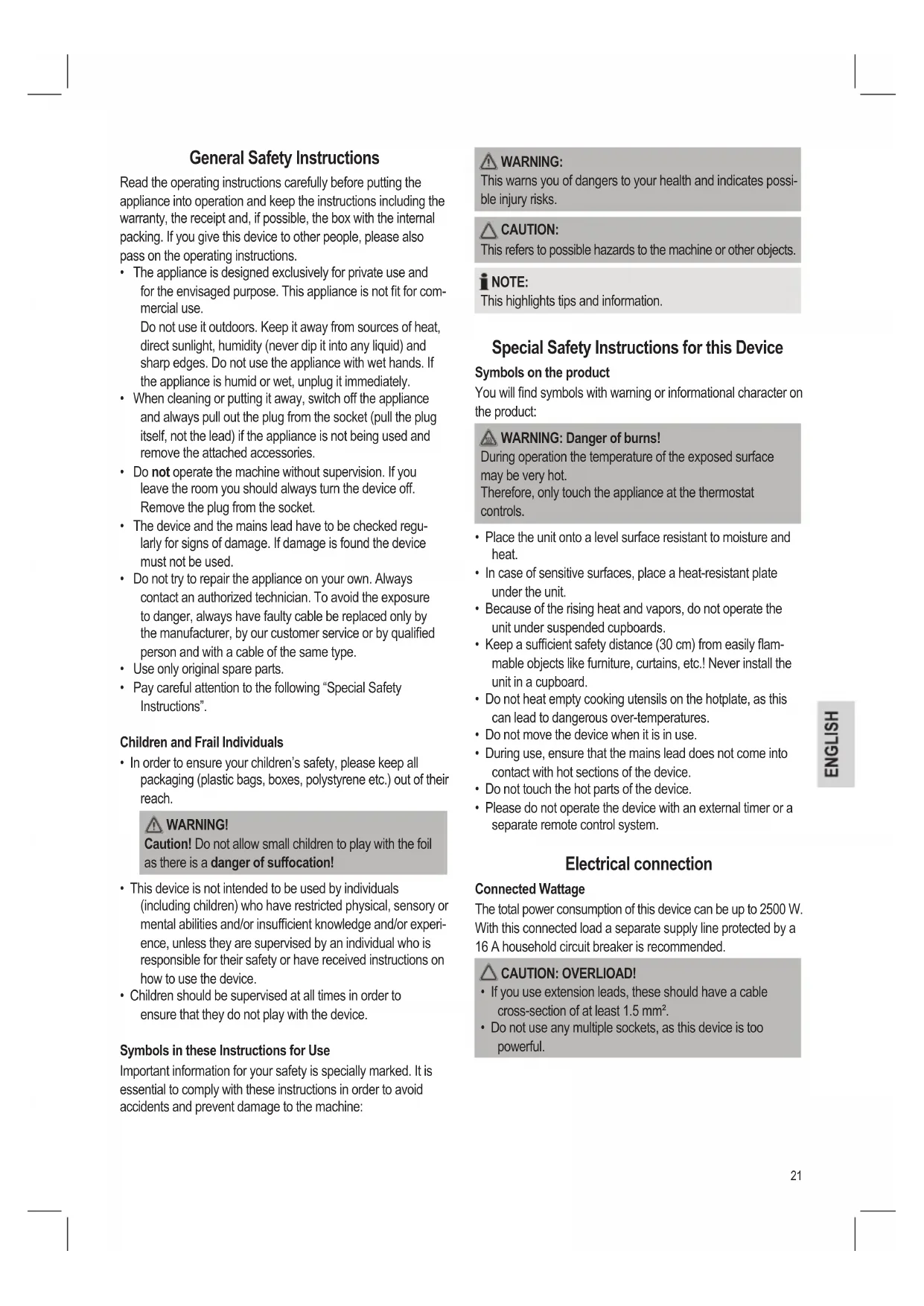 • The appliance is designed exclusively for private use and