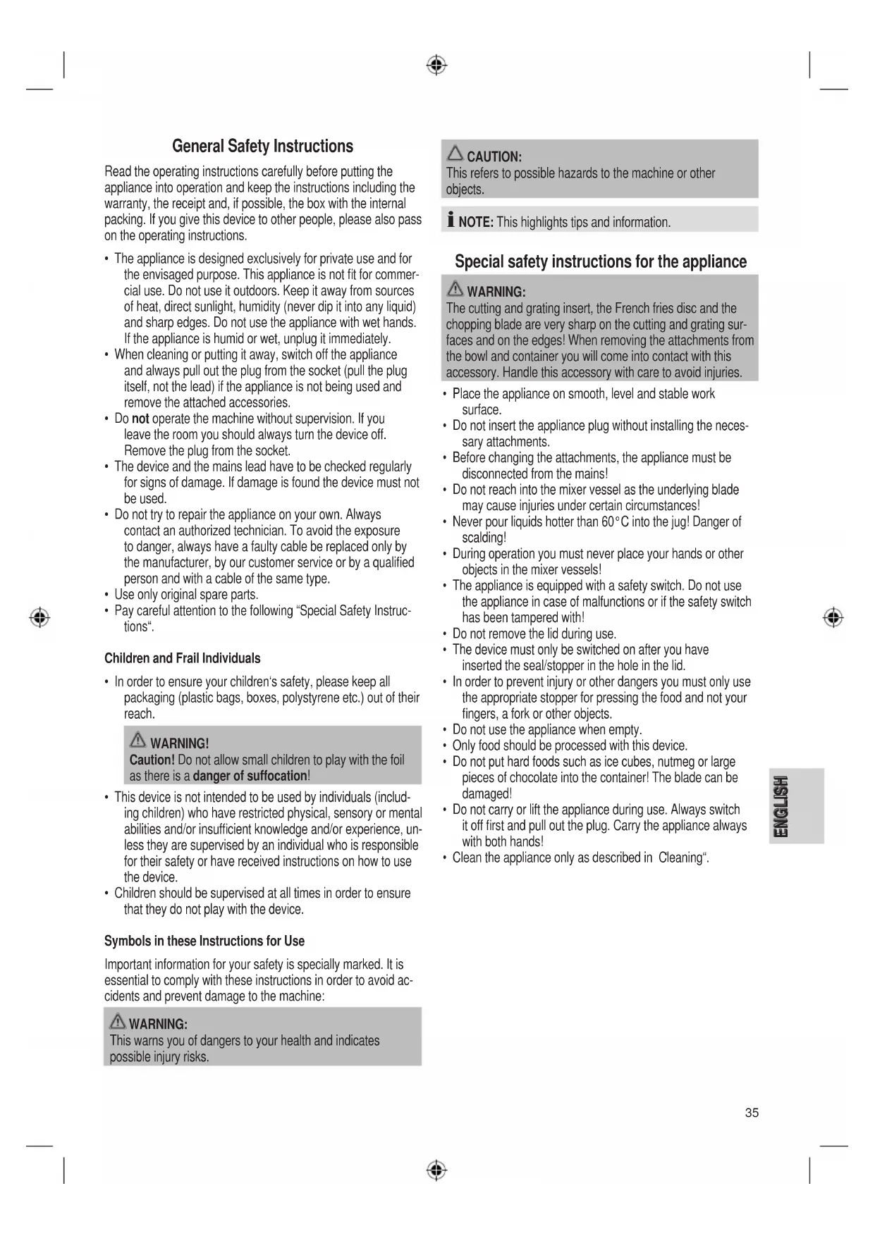 • Only food should be processed with this device.