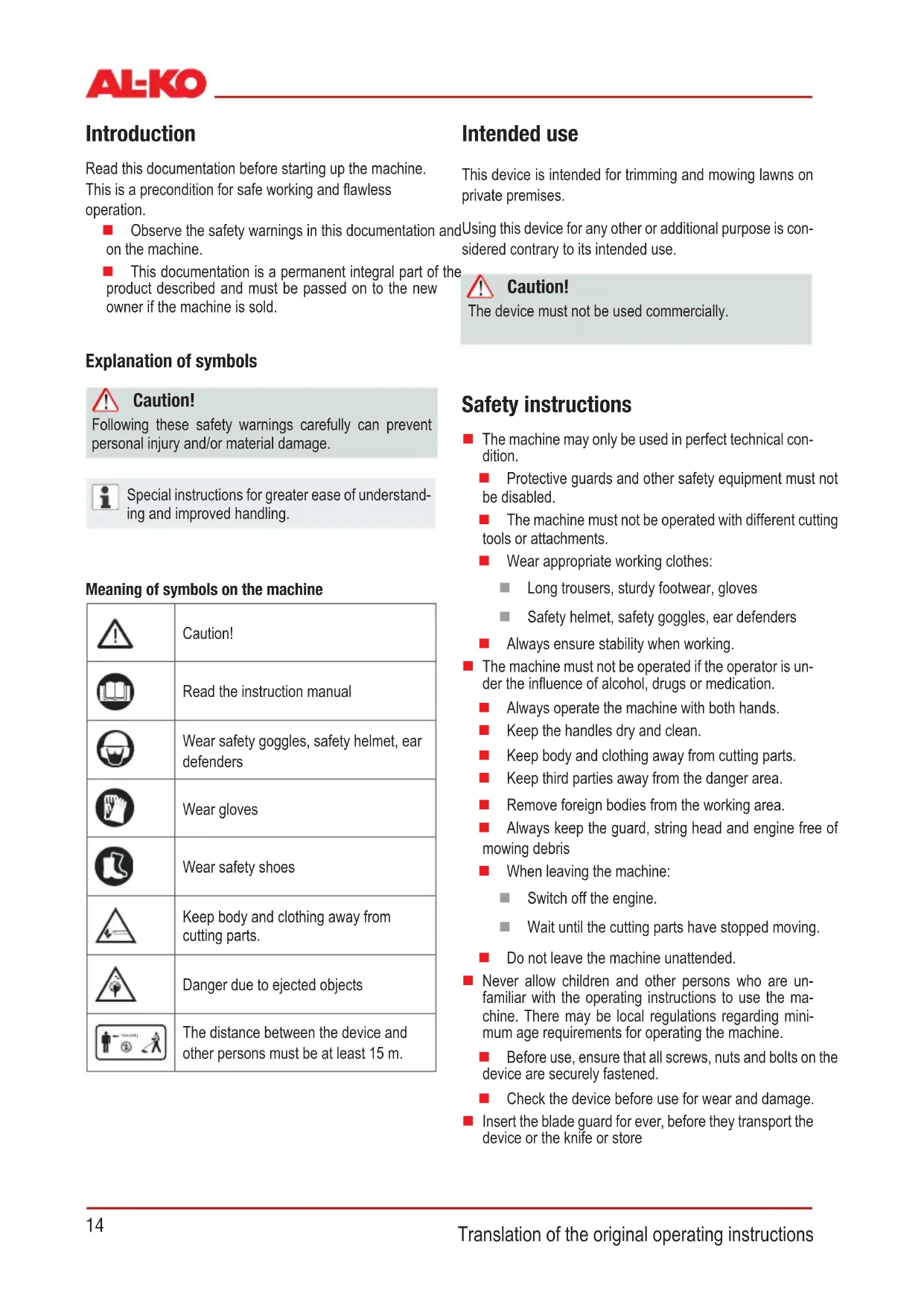 The machine may only be used in perfect technical con-