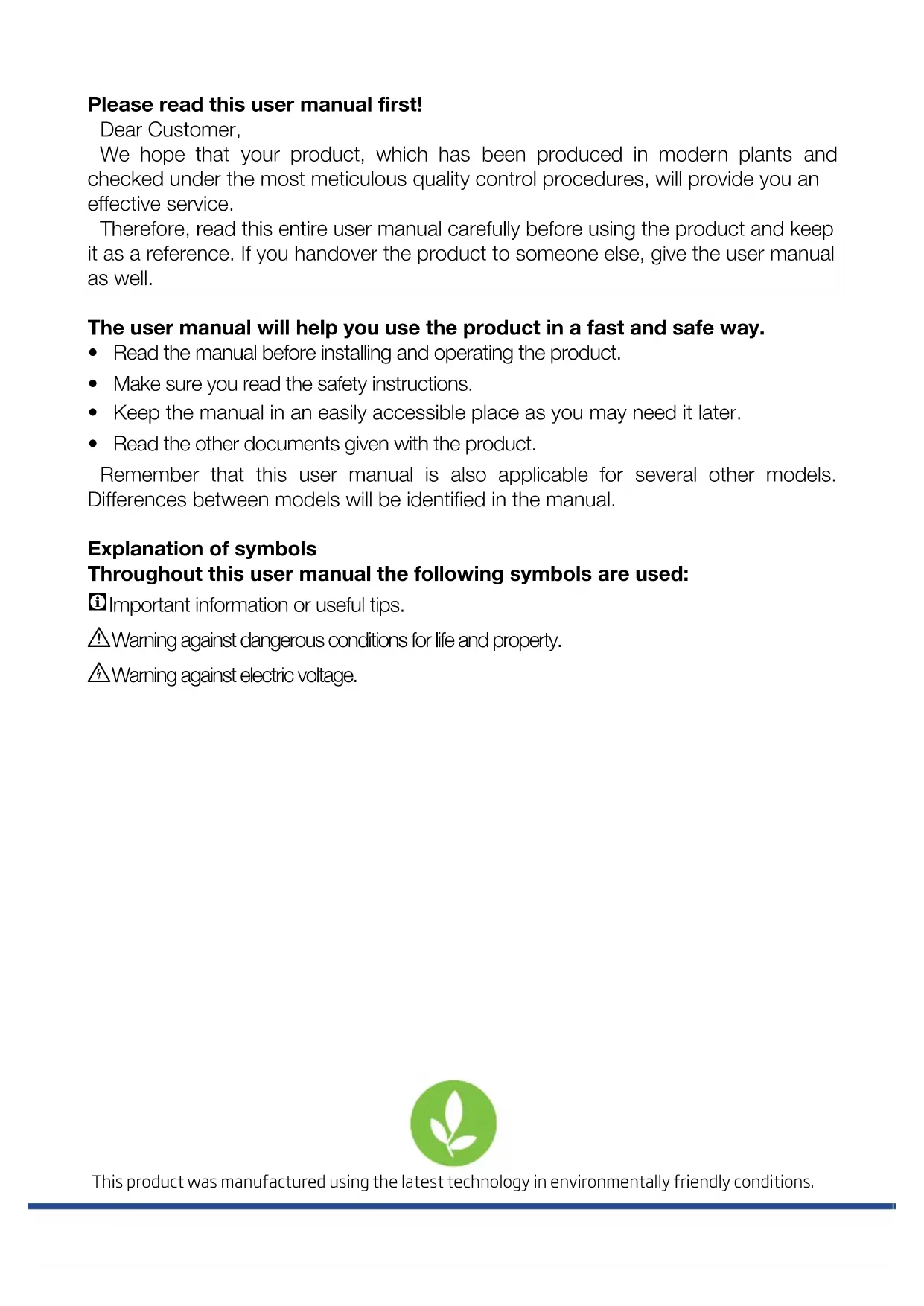 The user manual will help you use the product in a fast and safe way.